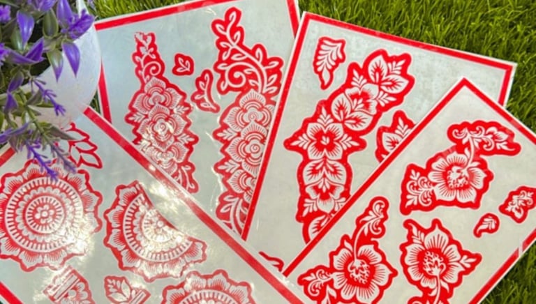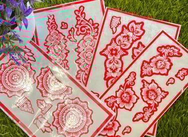 Easy-to-use henna and jagua stencils designed for quick and neat application. Perfect for beginners, kids, events, and DIY body art at home. Just place, apply, and enjoy beautiful designs with minimal effort.