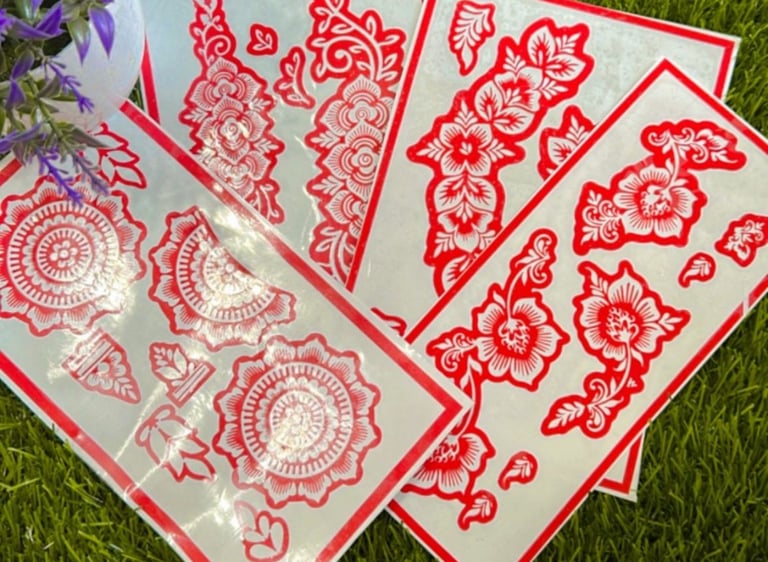 Easy-to-use henna and jagua stencils designed for quick and neat application. Perfect for beginners, kids, events, and DIY body art at home. Just place, apply, and enjoy beautiful designs with minimal effort.